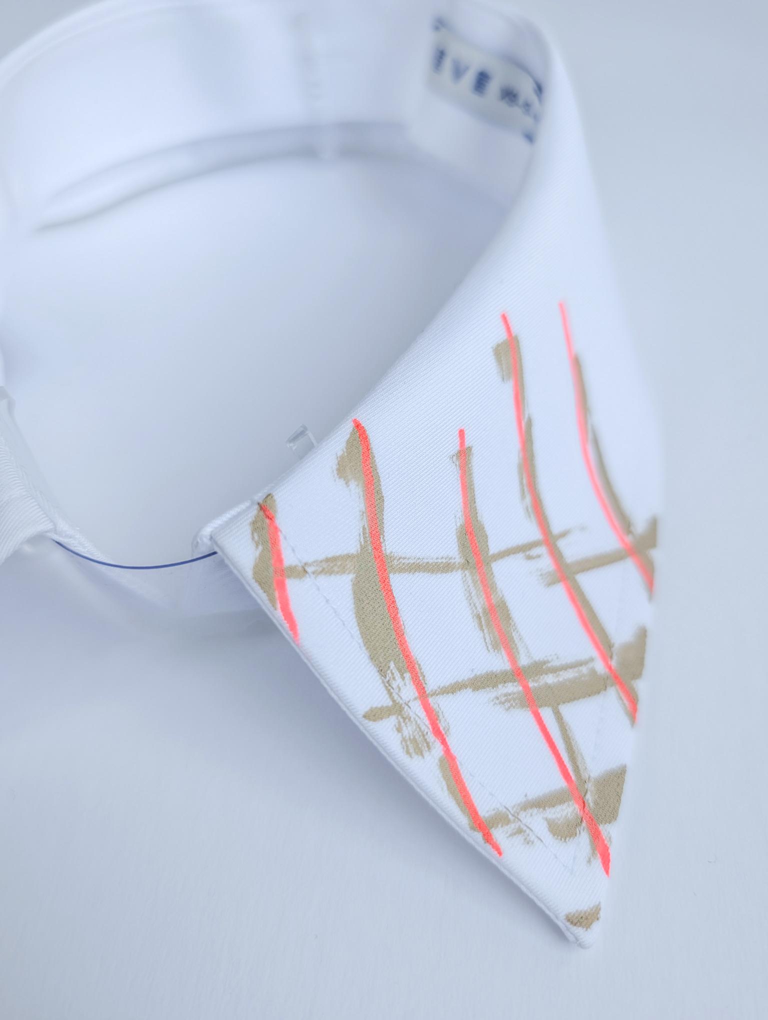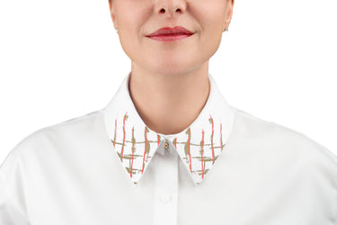 Each collar features a beautiful, patent-pending brass attachment system that connects seamlessly to our shirts. Simply align and push into place—it takes seconds and stays secure all day.