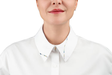 Each collar features a beautiful, patent-pending brass attachment system that connects seamlessly to our shirts. Simply align and push into place—it takes seconds and stays secure all day.
